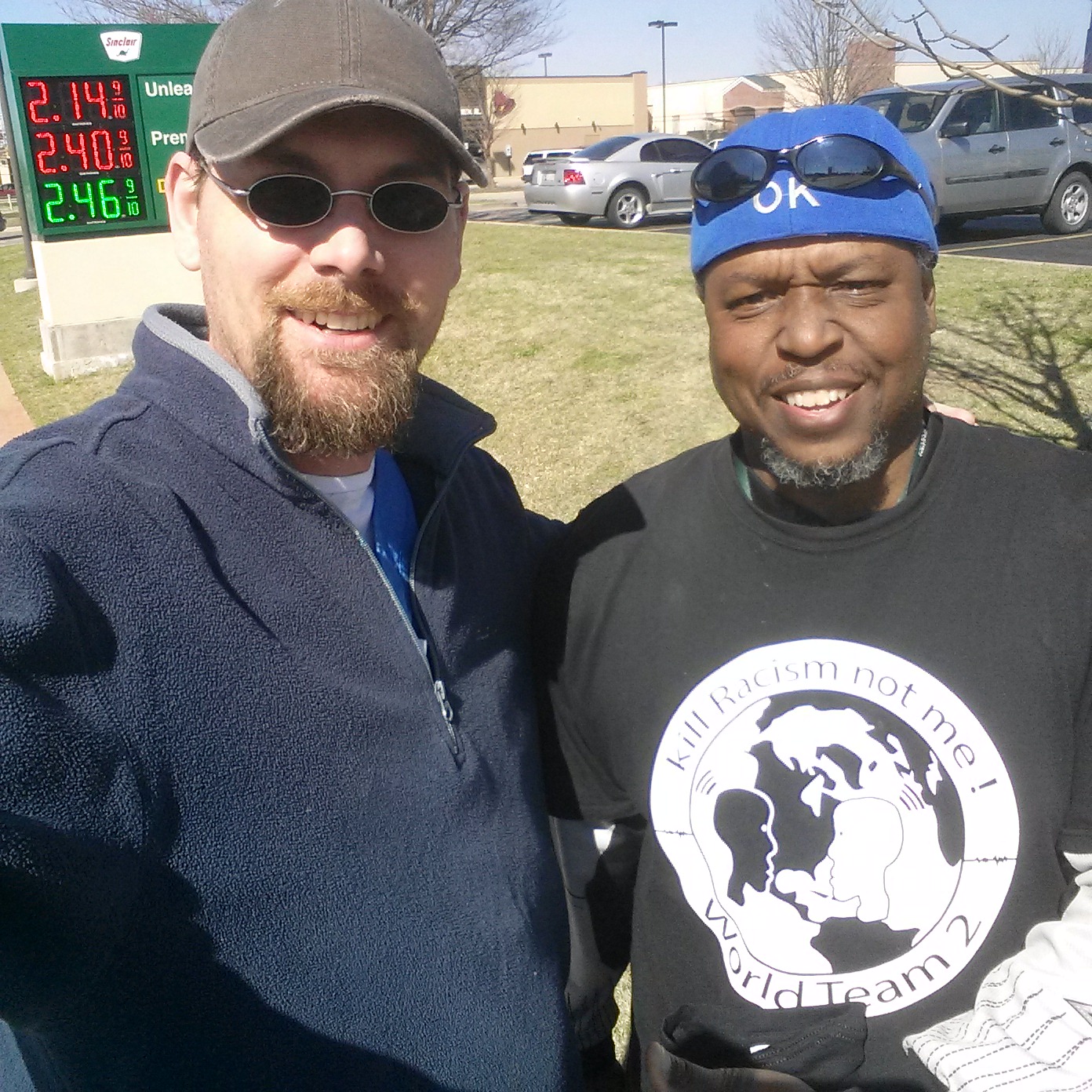 station in north Tulsa. Looking over at the edge of the road I saw some men sitting with a table with T-shirts, so I went over to talk with them. Turned out, these men from KillRacismNotMe (facebook), are Christians set out to battle racism and hate of all sorts.