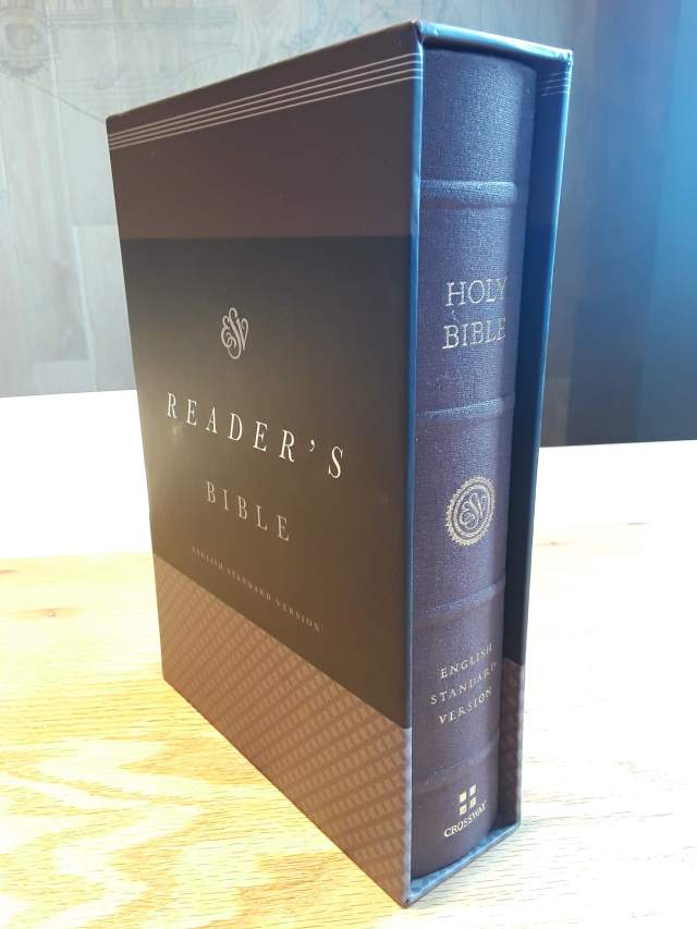 I have also started to not only read the Bible for the purposes of learning more and studying (with boots on [thought owed to Paul Washer]) but to simply read the Scriptures seeking to enjoy the Word of God and in fellowship with Him (boots off). For the first time ever I bought a “Reader’s Bible” and I love it (see below).