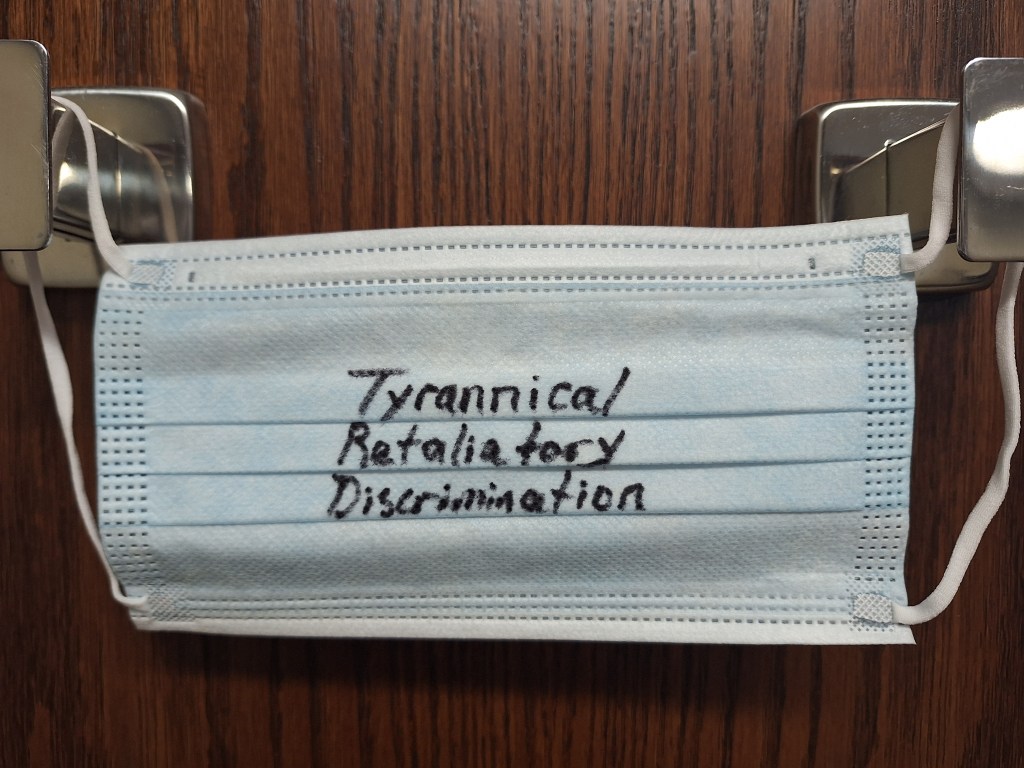 Let me get right to the point: mandating masks on those who do not follow in line with the vaccination fear-porn-propaganda is T.R.D. – Tyrannical Retaliatory Discrimination. These hospitals and their leadership, whether simply ignorant and possibly well-meaning or willingly know better and are evil (probably receiving bonus money from pharma as well), are tyrannical because they are willfully practicing their misuse of power, they are retaliatory in their practice because if you do not do “X” then we will require “Y” (in this case “no squirty, no freedom”), and they are willfully practicing discrimination against people who will not and do not align with their agenda.